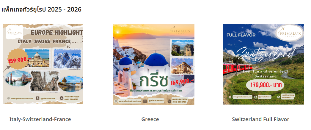จะทำให้คุณมั่นใจได้ว่าทุกการเดินทางจะราบรื่น ปลอดภัย และสนุกสนาน พร้อมทั้งเปิดโอกาสให้คุณได้เรียนรู้และเข้าใจวัฒนธรรมของแต่ละประเทศอย่างลึกซึ้ง การเดินทางกับแพ็คเกจทัวร์ยุโรป 2025 ไม่เพียงแต่ให้คุณได้เห็นความงดงามของสถานที่ท่องเที่ยวเท่านั้น แต่ยังมอบโอกาสในการสร้างมิตรภาพใหม่ พบปะผู้คนจากทั่วโลก และแลกเปลี่ยนประสบการณ์ชีวิตที่หลากหลาย ทุกทริปถูกออกแบบมาอย่างรอบคอบเพื่อให้คุณได้สัมผัสทุกเสน่ห์ของยุโรปโดยไม่พลาดแม้แต่รายละเอียดเล็ก ๆ ทั้งนี้เพื่อให้การเดินทางของคุณเต็มไปด้วยความประทับใจ ความสนุกสนาน